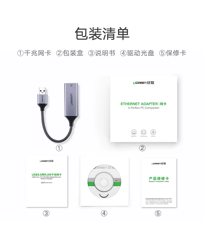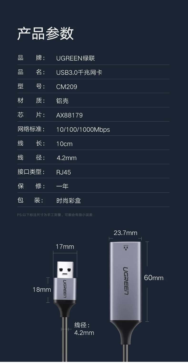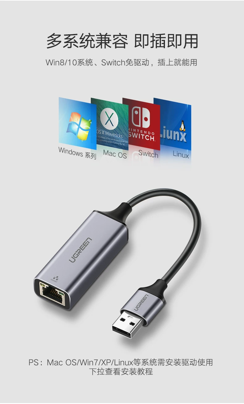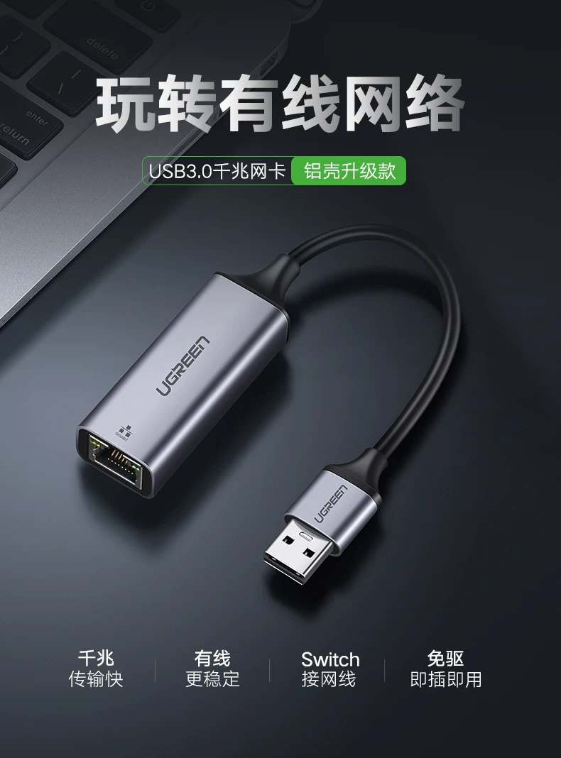 UGREEN绿联CM209 USB3.0转RJ45千兆网卡Gigabit Ethernet Adapter